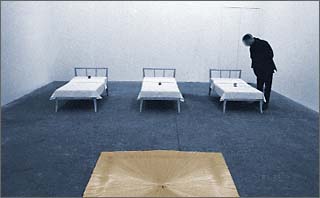 Untitled (Three Types #1) 1993 wood, cloth, silicone rubber,and stainless steeleach bed: 28x31x65 inches