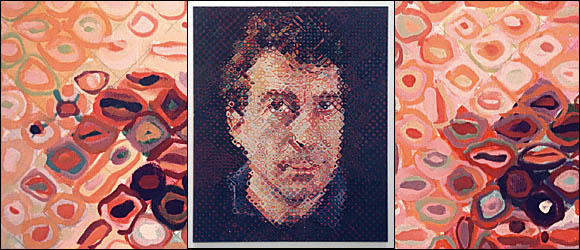 | Chuck Close Bill 1990, oil on canvas 72x60 in The Risk of Existence, an exhibition curated by Mark Greenwold at Phyllis Kind, 136 Greene St. Nov 7 - Dec 31 '98. Writing in the New York Times, Roberta Smith had this to say: The exhibition included works by Balthus, William Blake, Lucian Freud, Jim Nutt, Vija Celmins, Mark Greenwold, Henry Darger, Paul Cadmus, Myron Stout... |