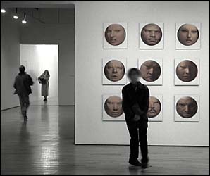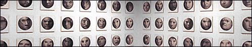 "Han-Sun Temple, in Eastern China, was famed for the far-reaching sound of its ancient bells. The bells were traditionally rung 108 times on special occasions, including New Year's Eve. Each roll of the bell reverberates through one of the 108 windows in the Buddhist underworld as a means of expressing its blessing to the entire 108 entities in the circle of reincarnation. Chinese Buddhism believes that there are six basic levels of entities in reincarnation: Fairies, Humans, Guardians, Demons, Hell Prisoners, and Animals. Through these cycles of transformations, man has inherited certain traits from his inhuman counterparts and molded them into his nature. Inside my Temple, there are portraits of 108 beings. The Temple with 108 Windows reminds us of our past and asks where are we going." - Daniel Lee All portraits were created by computer manipulation (Photoshop) and outputted by digital ink jet printing. |