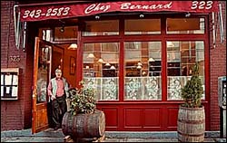 When you're in our favorite neighborhood, drop in for a glass of wine and the best charcuteries you'll ever have. This Parisian chef, charcutier, and pastry maker sustains discriminating local artists with his roasted hams, home made sausages, and hearty soups. Bernard is equally devoted to cassoulet, unbeatable ham sandwiches, bread pudding, and ice cream. This is a real place run by a real guy. Bernard is open for breakfast, lunch, and dinner/drinks until 4 AM. Catering and takeout also available.CHEZ BERNARD 323 West Broadway 212-343-2583 |