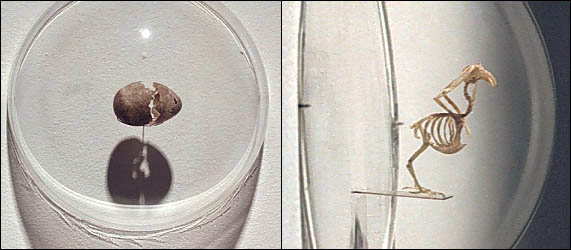 left: EGG, 1997 Finely ground fingernails and hair, super glue 1x1.5x1 in.