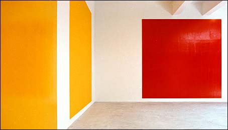 Alone among the somber rooms: pure, high gloss, primary colors.