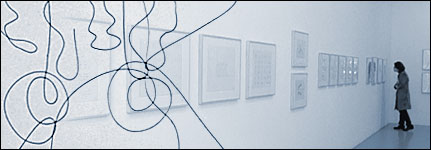 American choreography for over thirty-five years. Begun as private notations, many of her drawings contribute to her choreographic process. As she puts it, drawing "sits in the air between me and my dancers..." In turn, she has come to see choreography as a kind of drawing. "Whether they are in air or on paper, it's a whole other vista of possibility, another way of thinking about the body moving in space that frees me up to do things I would never think of doing in dance." - paraphrased from an essay by Hendel Teicher, who organized the exhibition.This exhibition is at The Drawing Center's Drawing Room, 40 Wooster St. |