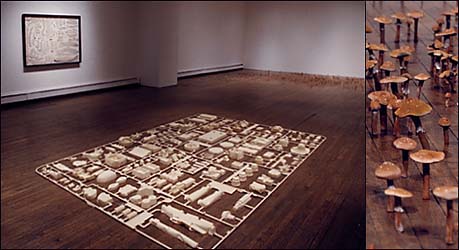 is a floor sculpture of more than 2,000 finely-executed hallucinogenic mushrooms.