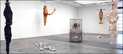 Installation view Marc Quinn came to the attention of the international public with "Self", a work in which the artist's head was cast in his own frozen, congealed blood. This and other work using human bodily fluids are key to the artist's central preoccupation: the exploration of self and issues of mortality. Pictured at the center here is one of two sculptures made of real flowers entitled "Eternal Spring", which are frozen in full bloom and presented in refrigeration. A floral cadaver... |