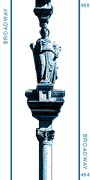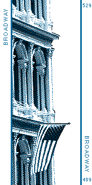 Broadway circa 1855 was the greatest shopping street in America. Windowshopping was born on Broadway south of Houston: the area's cast-iron buildings held America's first large plate-glass windows. It was a riot of variety houses, music halls, department stores, and elegant hotels. Showman P.T. Barnum exhibited a fetching female impersonator at #537, now an "Everything Under $10.95" discount store. |